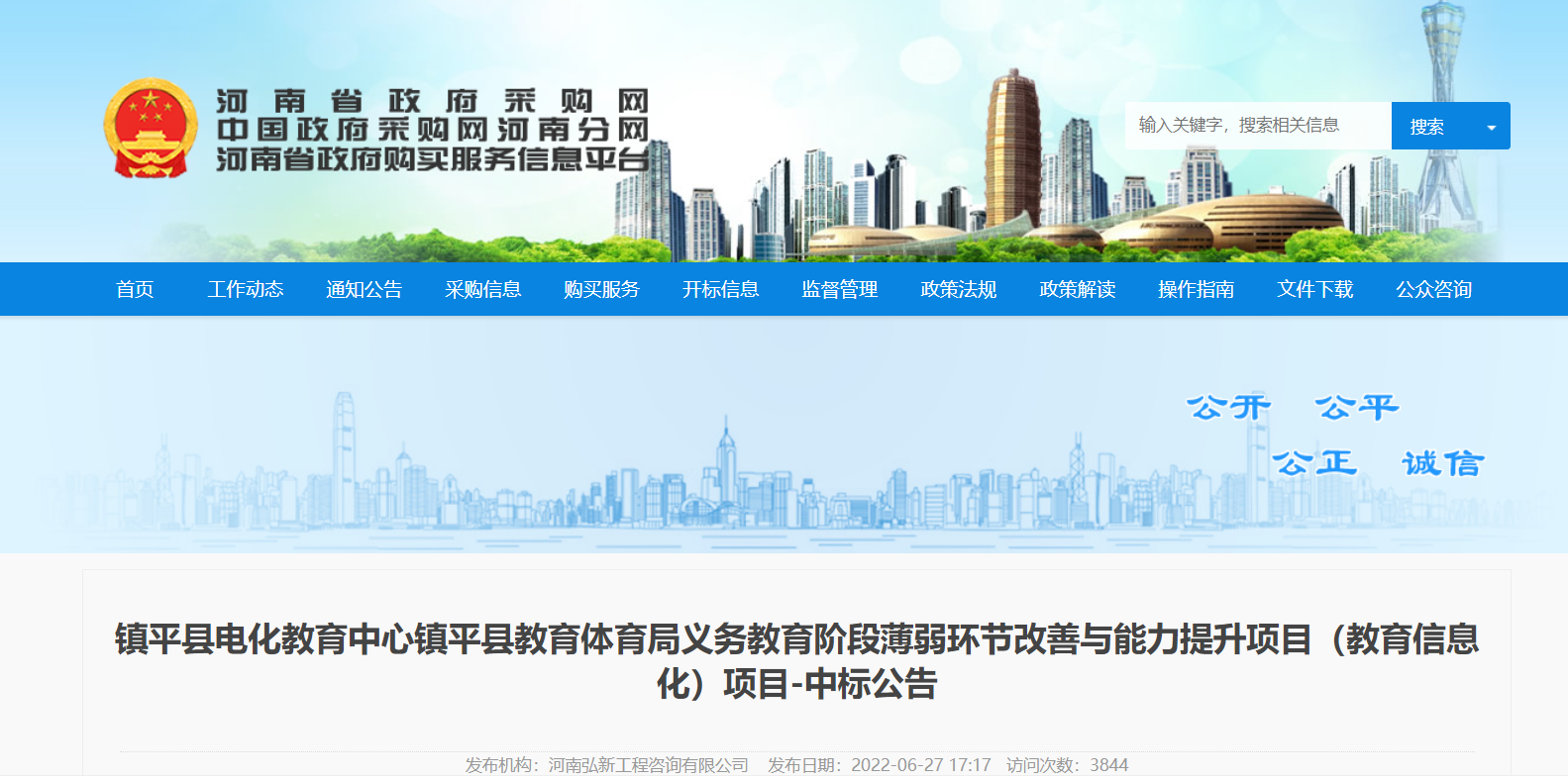 河南省政府采购网“镇平县电化教育中心镇平县教育体育局义务教育阶段薄弱环节改善与能力提升项目(教育信息化)项目”