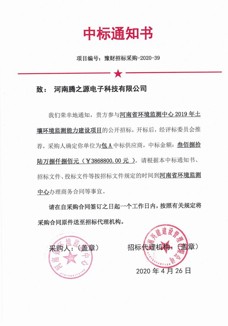2020年09月01日,河南凯发k8一触即发电子科技有限公司,现更名尊龙凯时·[中国区]人生就是搏! ,经过精心的筹备,以自身过硬的实力资质、专业的技术团队、以3868800.00的合同金额,拿下了&l